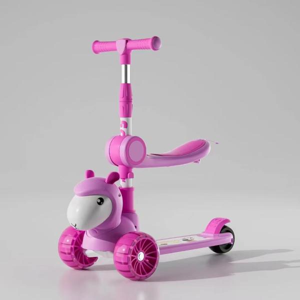 The design concept of this model children's scooter can not only exercise the child's body and coordinate the body's flexibility, but also improve the child's reaction ability. By periodically kicking the ground with the feet, it gives power to the car and pushes the car to slide forward. It can exercise the child's Flexibility, balance, improve reaction speed, and strengthen body coordination.
